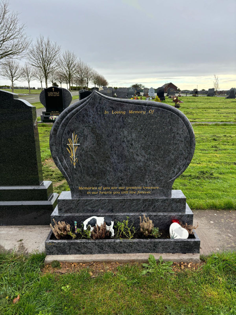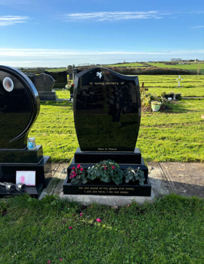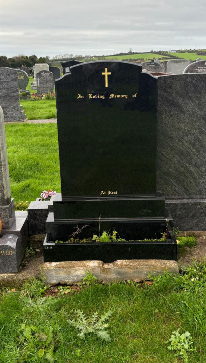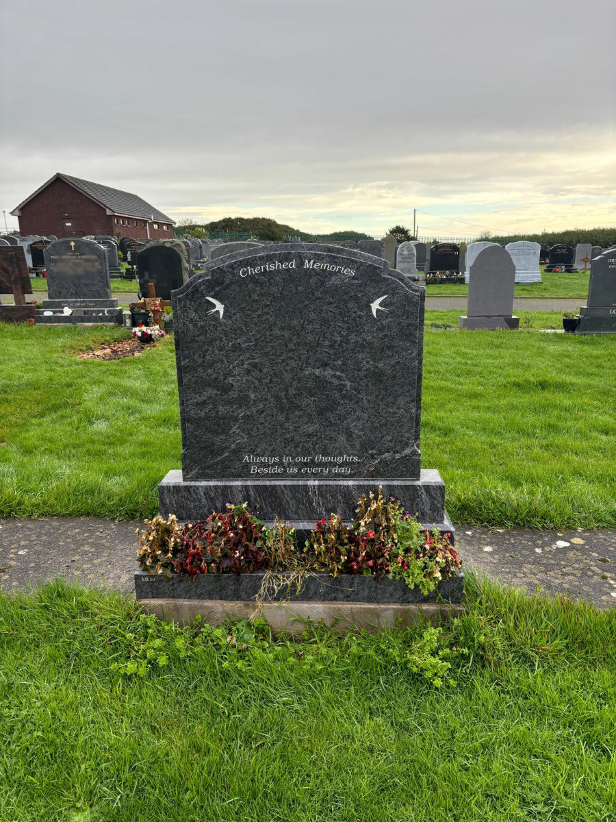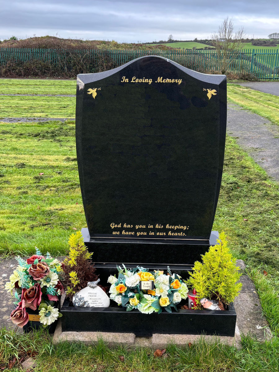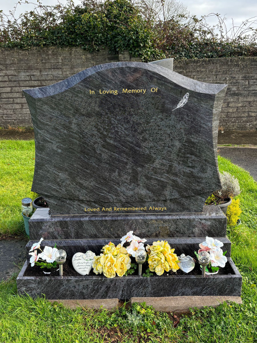 Headstone 3.5” thick. Moulded edge. Overall height 37”