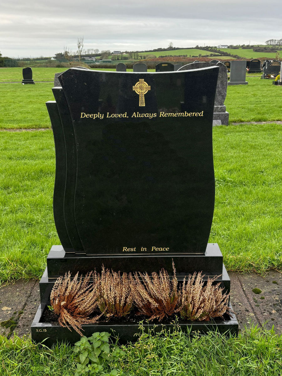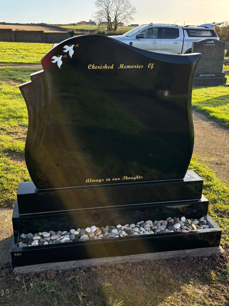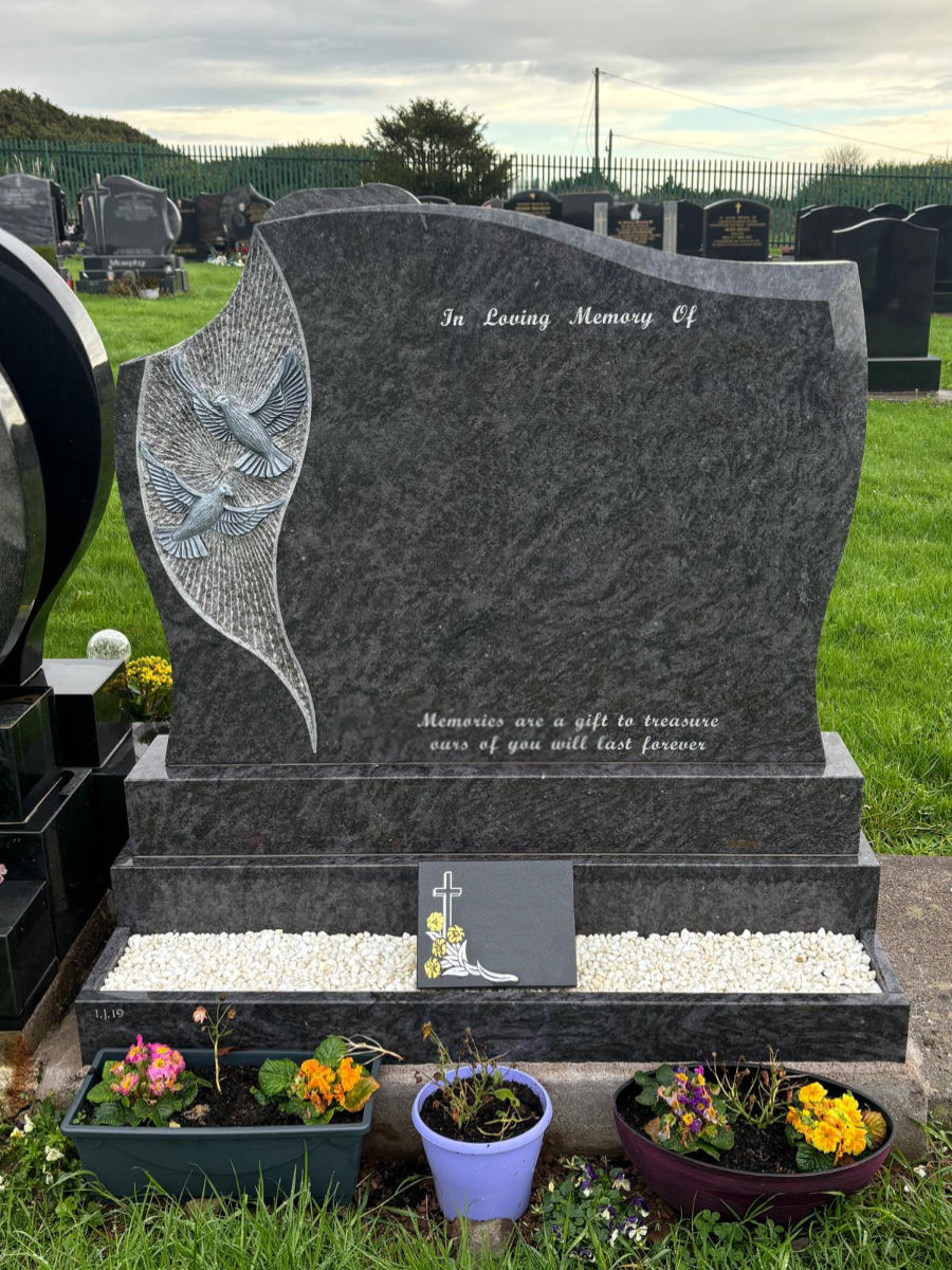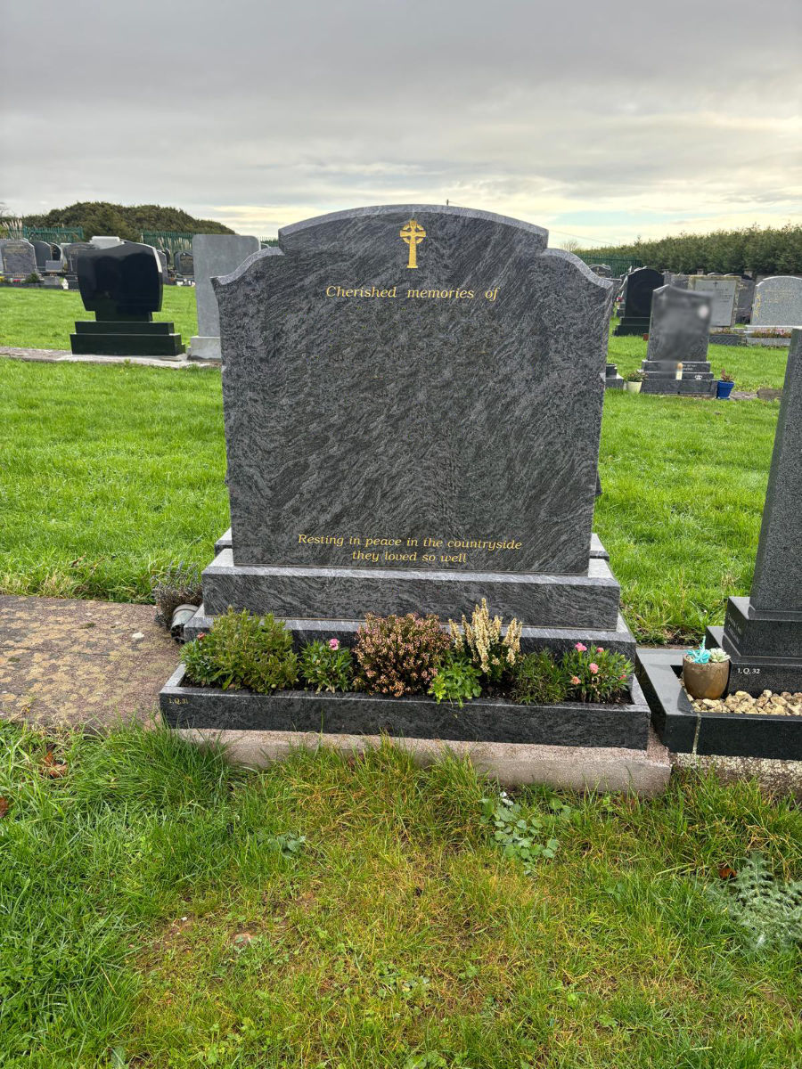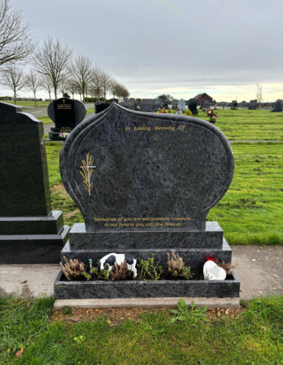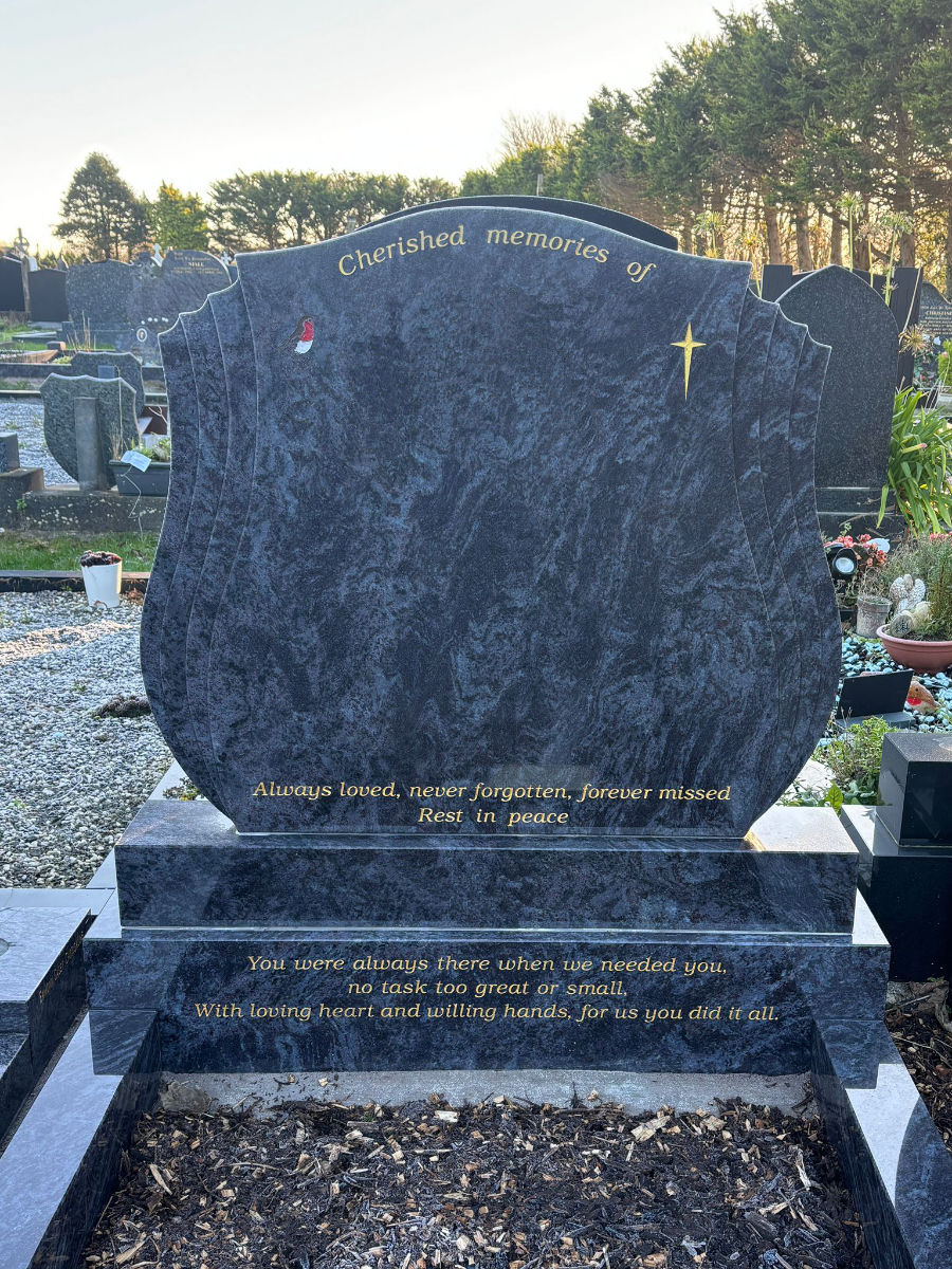 Headstone 3.5” thick. Moulded edge. Overall height 37”