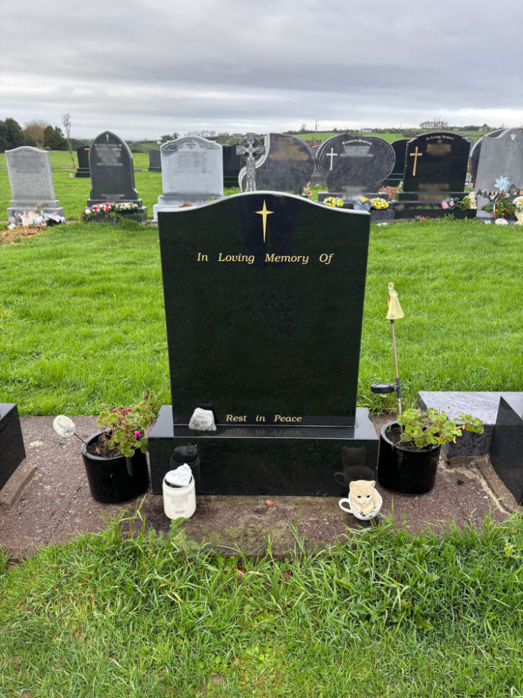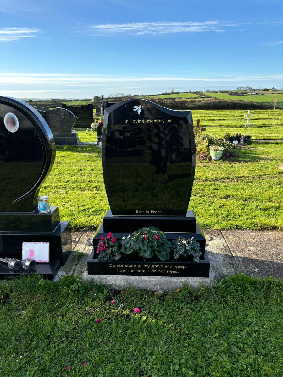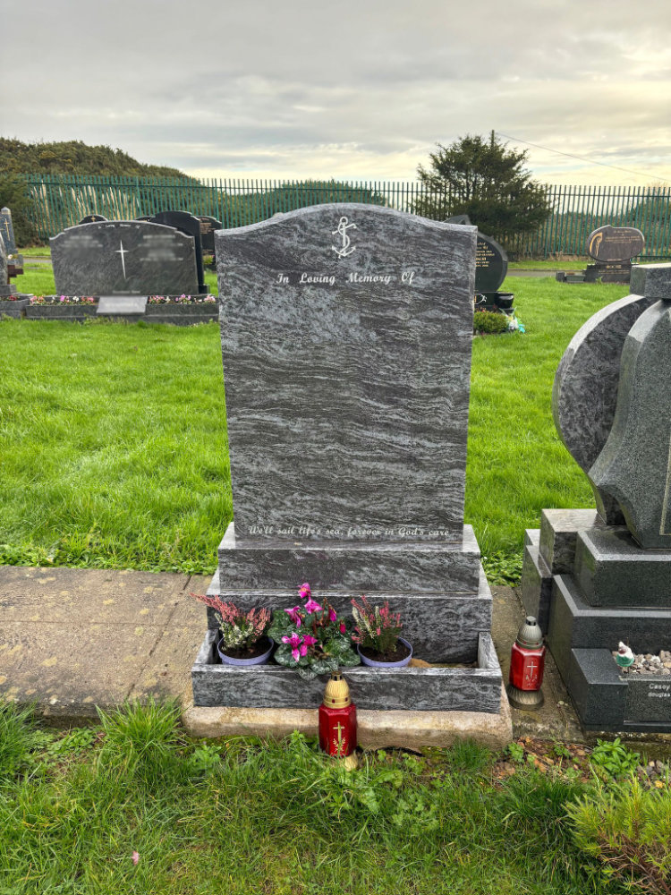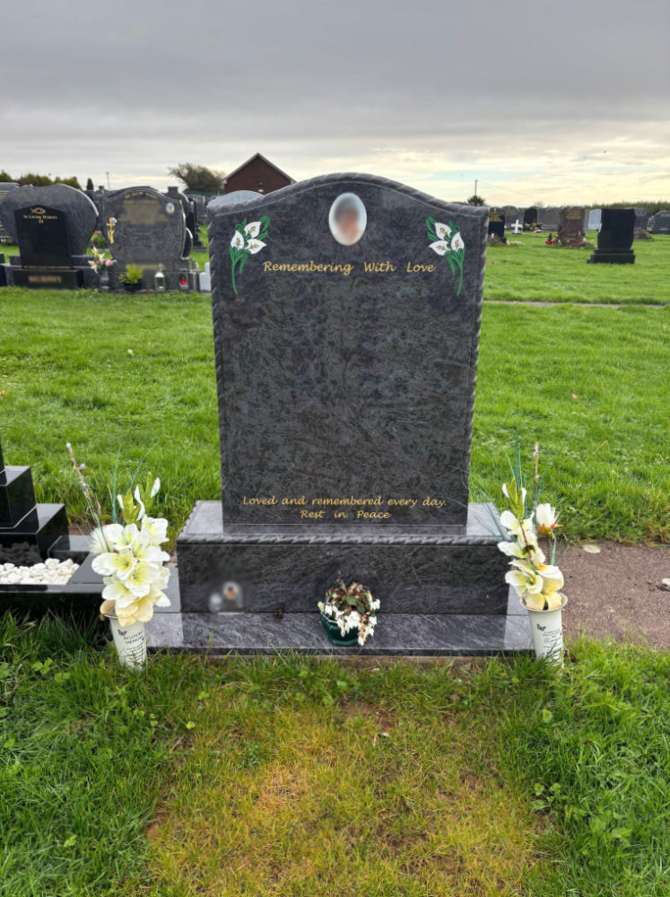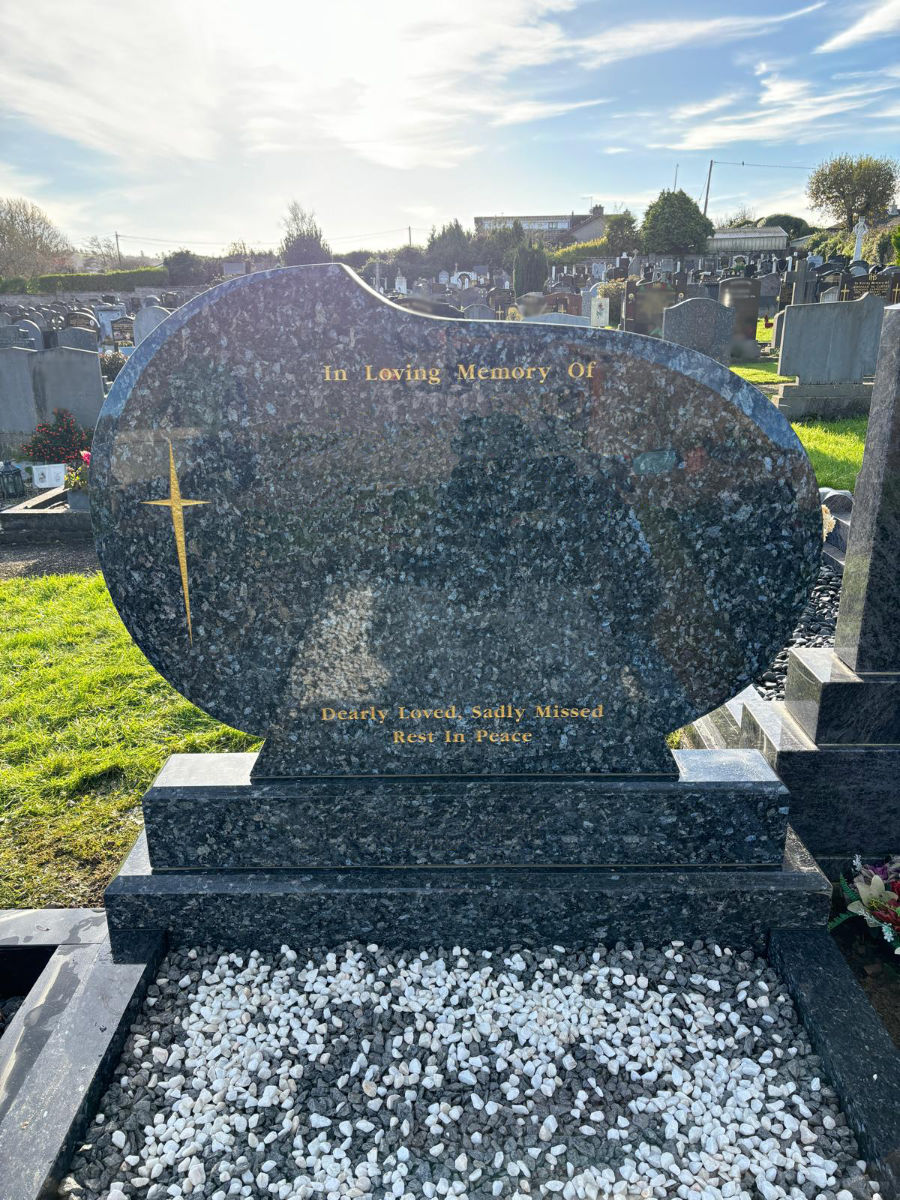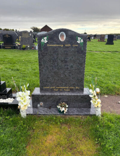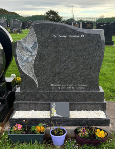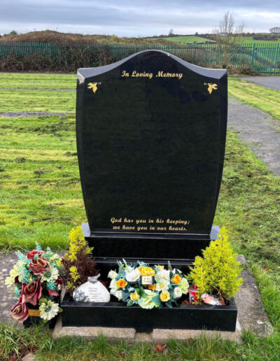 Headstone 3.5” thick. Moulded edge. Overall height 37”