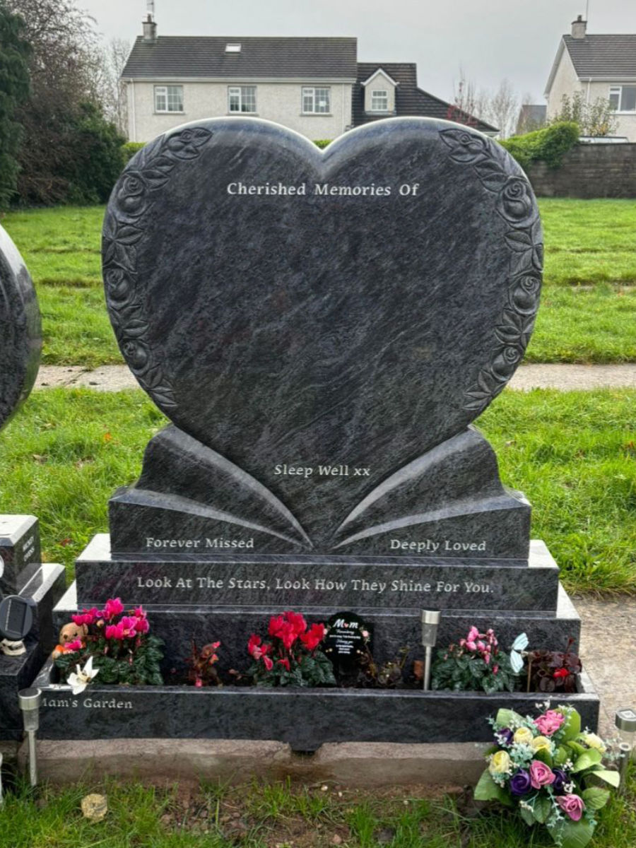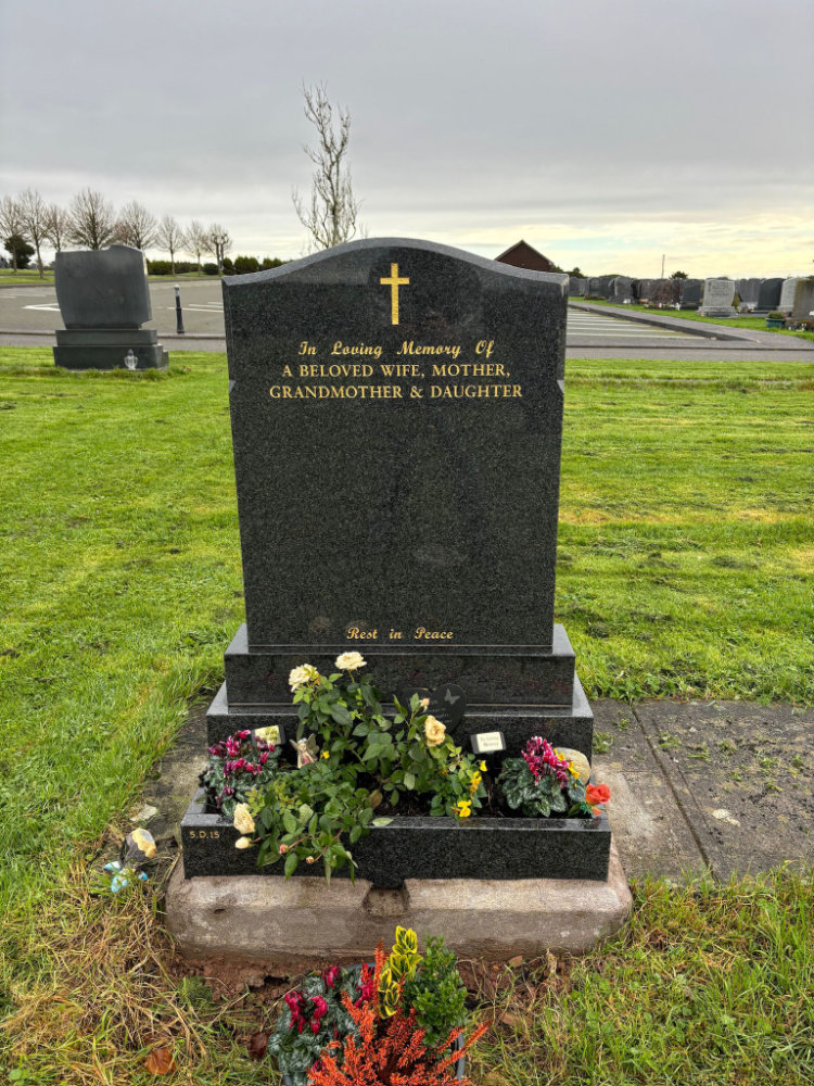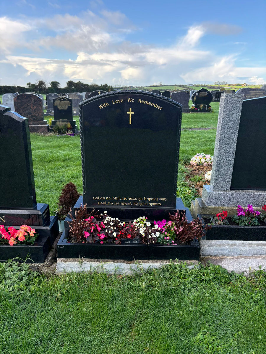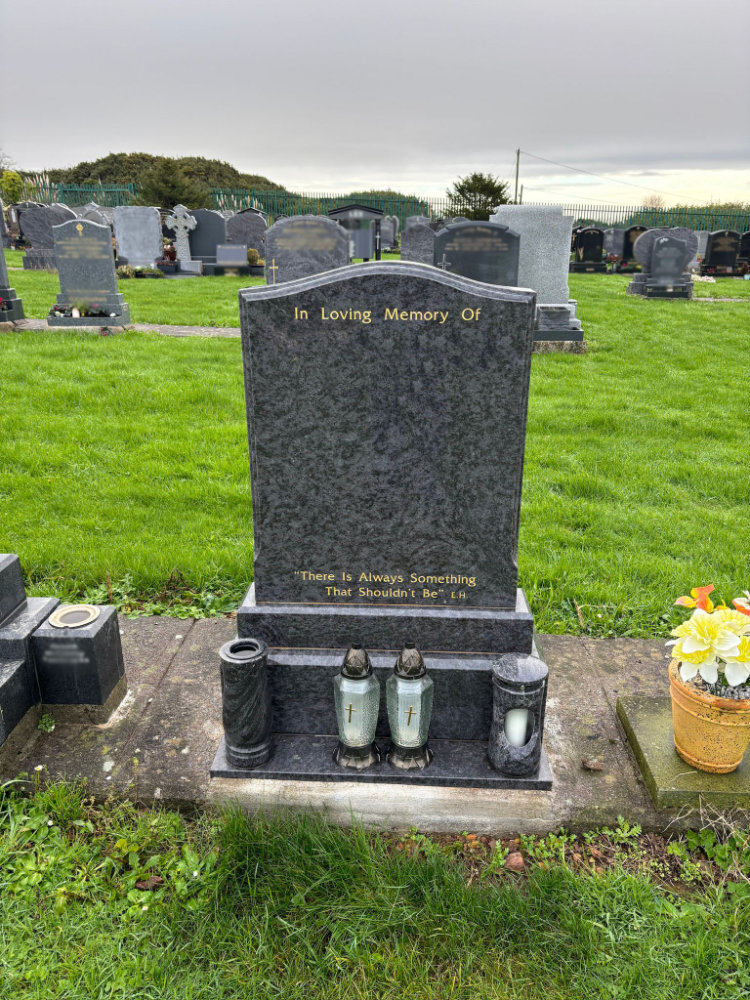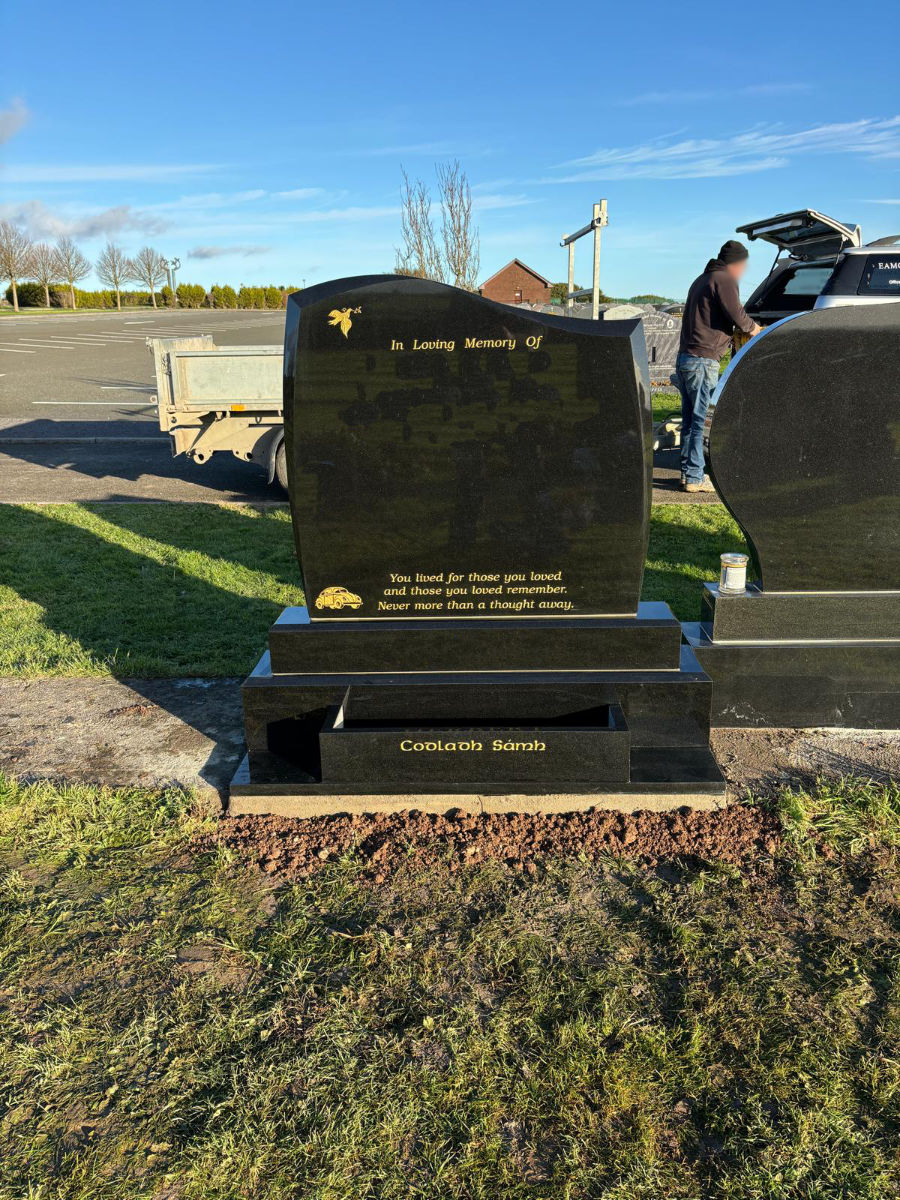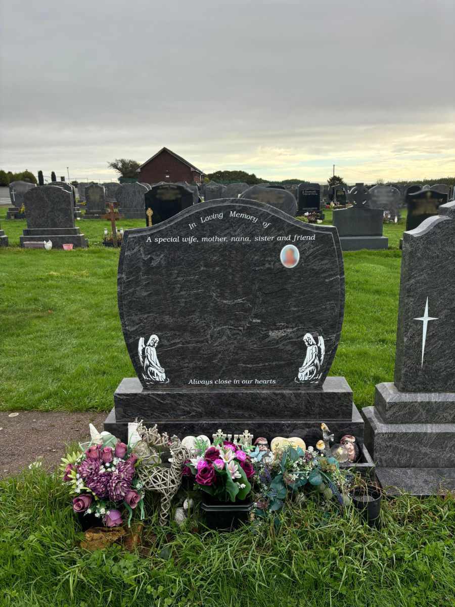 Headstone 3.5” thick. Moulded edge. Overall height 37”