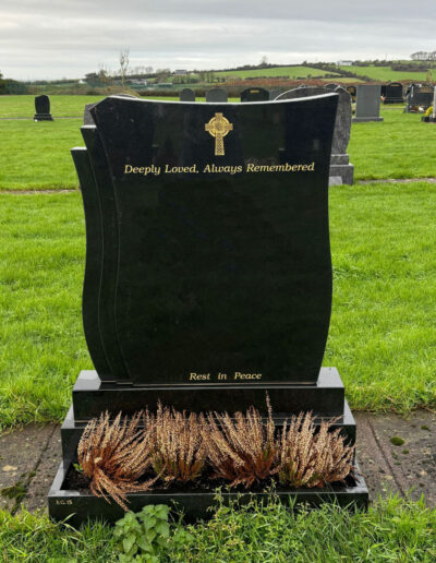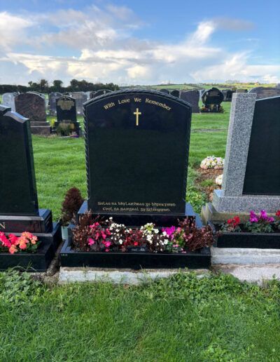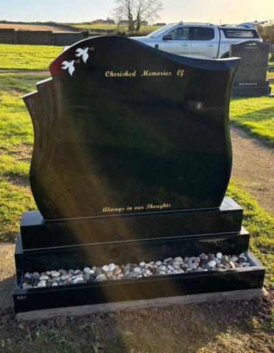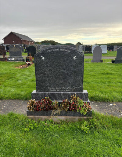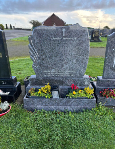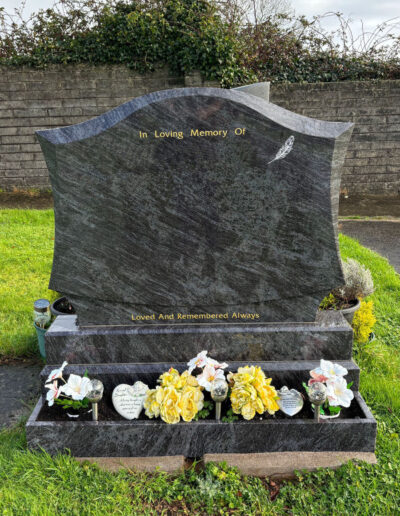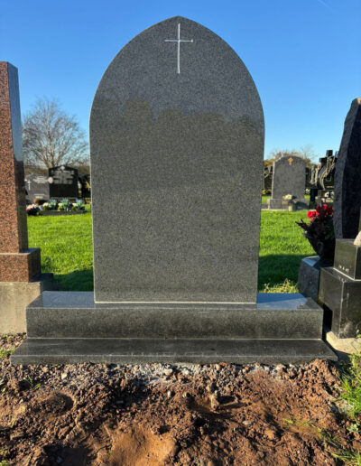 Headstone 4″ thick Bevel around headstone. Overall height 48″