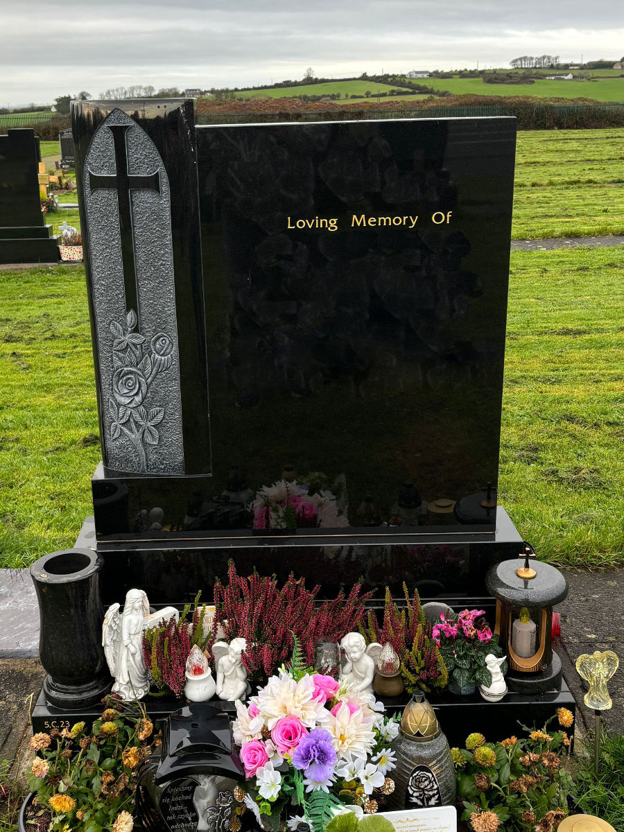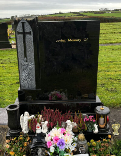 Headstone 4” thick – Carved roses along sides – Overall height 50”